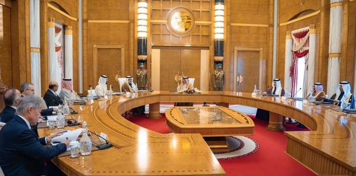 His Majesty King Hamad bin Isa Al Khalifa received at Al Sakhir Palace, in the presence of His Royal Highness Prince Salman bin Hamad Al Khalifa, the Crown Prince and Prime Minister, His Highness Shaikh Nasser bin Hamad Al Khalifa, Representative of HM the King for Humanitarian Work and Youth Affairs and Chairman of the Board of Directors of Bapco Energies.