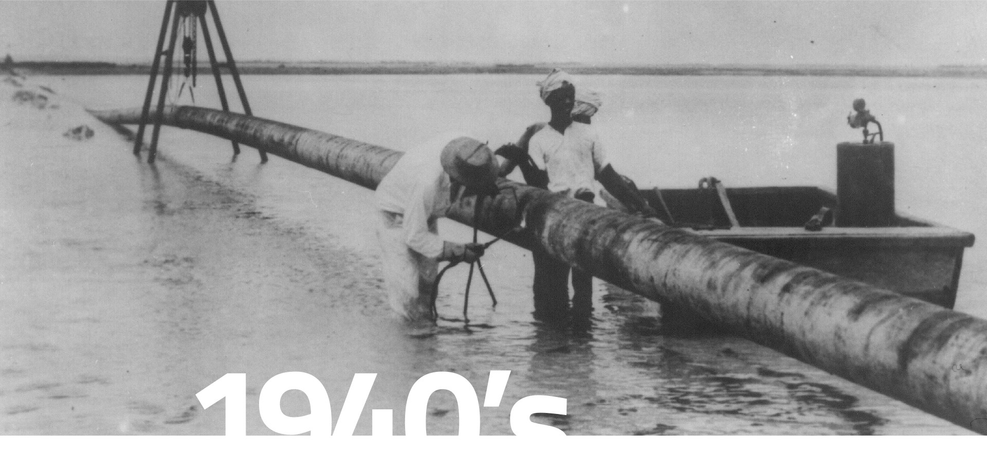 In April 1945, the A-B Pipeline was extended between Bahrain and Saudi Arabia in the era of HH the Late Shaikh Salman bin Hamad Al Khalifa