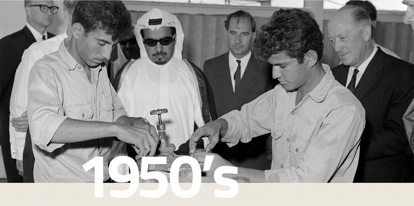The Bapco Apprenticeship Training Scheme, commissioned in 1955, became the cornerstone of the company’s commitment to promote localisation of its workforce. It began offering crafts training along with commercial and operator apprenticeships, and laid the foundation for the training of a new generation of Bahraini artisans, boilermakers, carpenter’s, clerks drivers, tug-boat operators and more.