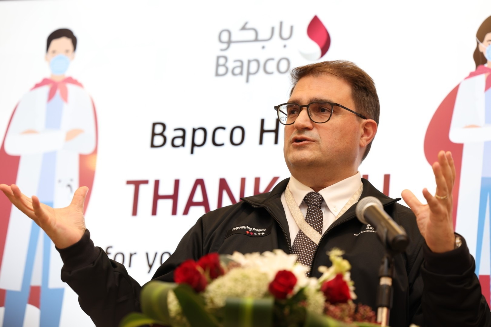 During the event, Bapco’s Chief Executive Officer recognized the medical staff and Crisis Management Team members and support groups for their distinguished hard work during this pandemic and thanked them for keeping the Bapco family and the Kingdom of Bahrain safe.