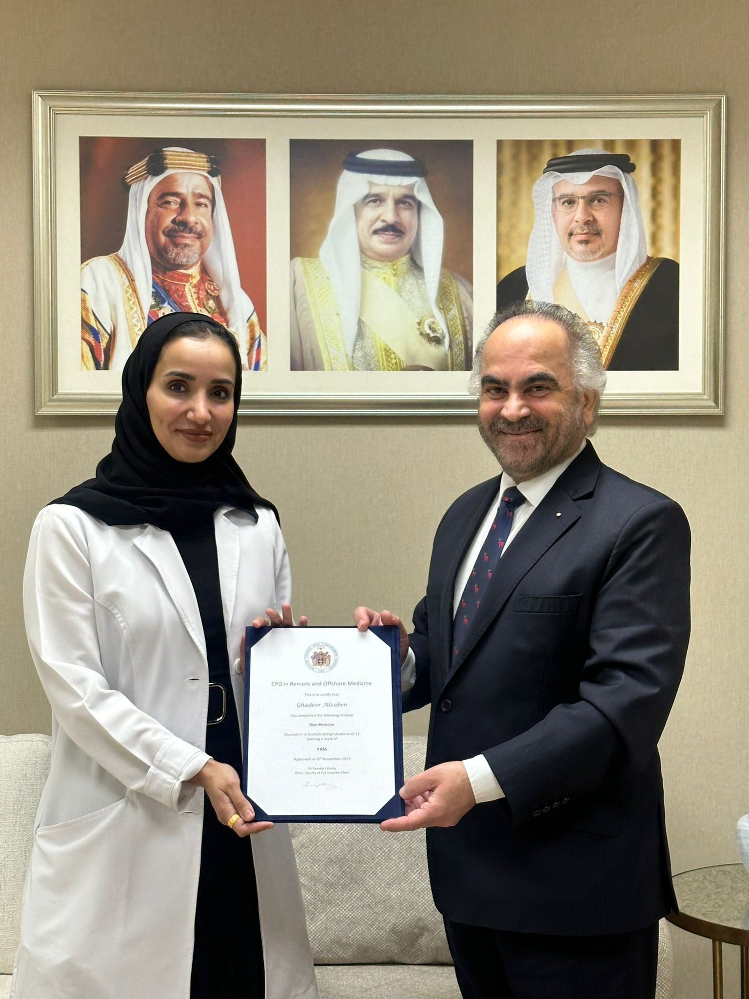 In 2023, Dr. Ghadeer attained two diving certificates from the prestigious Royal College of Surgeons Edinburgh, Scotland and Undersea and Hyperbaric Medical Society in San Diego, United States of America, to further develop her skills in diving medicine as it is a rare but highly in demand field in the Arabian Gulf region.